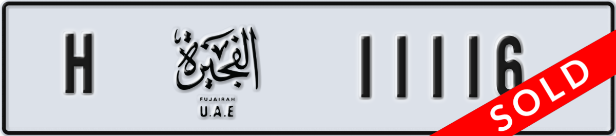 fujairah License Plate Number 11116 Code H