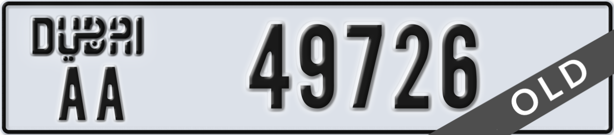 dubai License Plate Number 49726 Code AA
