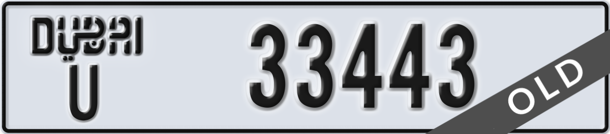 dubai License Plate Number 33443 Code U