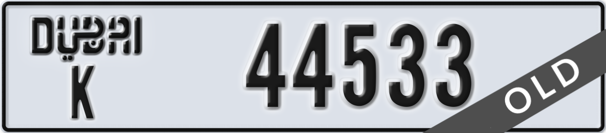 dubai License Plate Number 44533 Code K