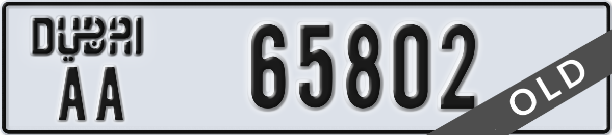 dubai License Plate Number 65802 Code AA