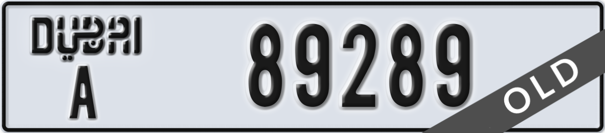 dubai License Plate Number 89289 Code A