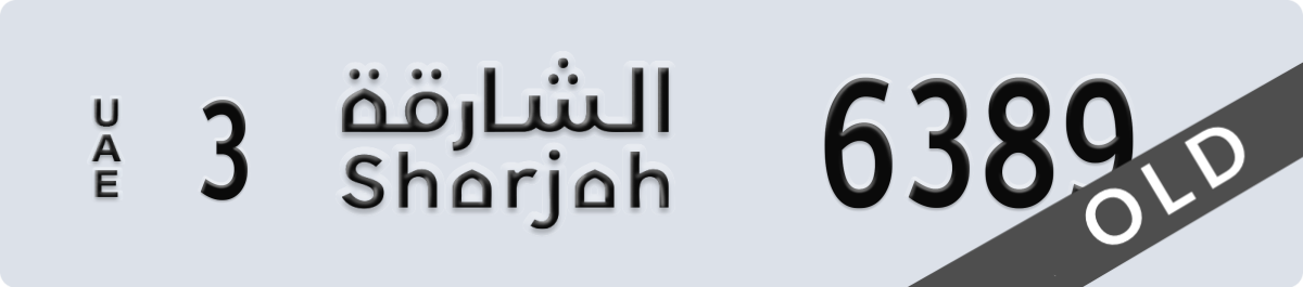 sharjah License Plate Number 6389 Code 3