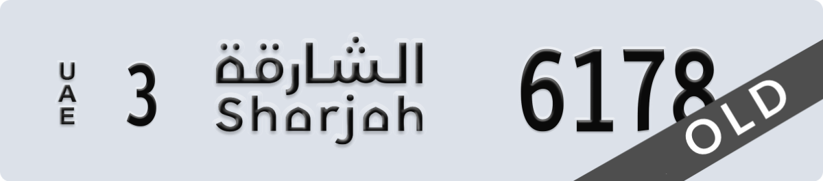 sharjah License Plate Number 6178 Code 3