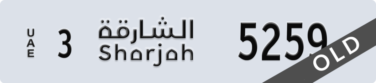 sharjah License Plate Number 5259 Code 3