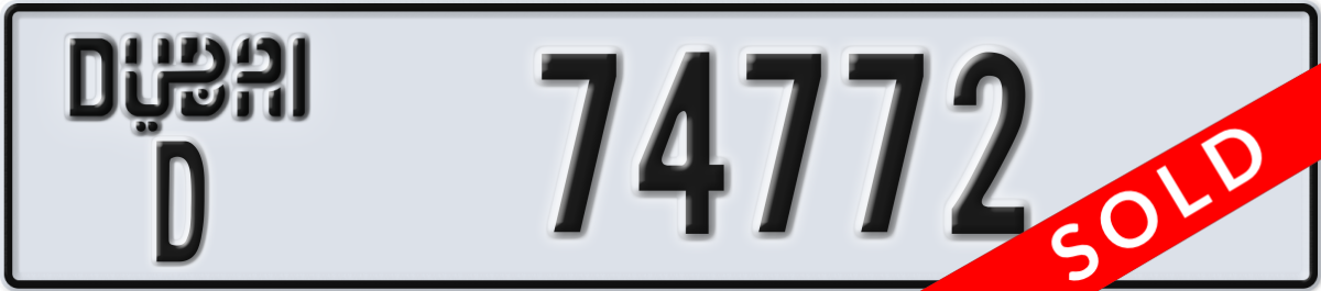 dubai License Plate Number 74772 Code D