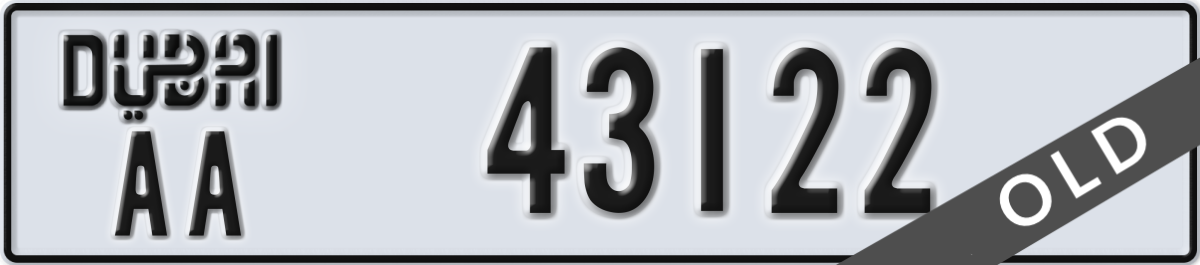 dubai License Plate Number 43122 Code AA