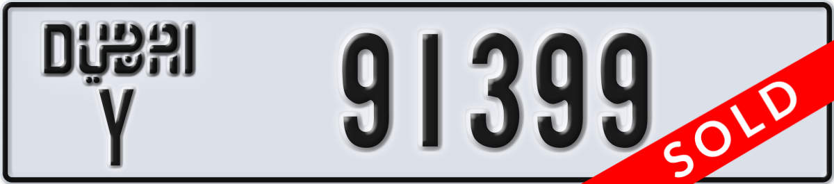 dubai License Plate Number 91399 Code Y