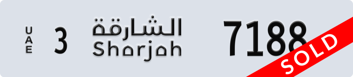 sharjah License Plate Number 7188 Code 3