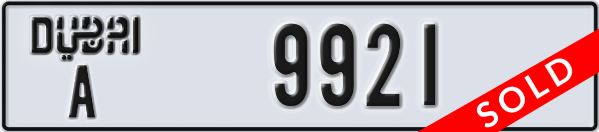 dubai License Plate Number 9921 Code A