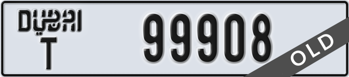 dubai License Plate Number 99908 Code T