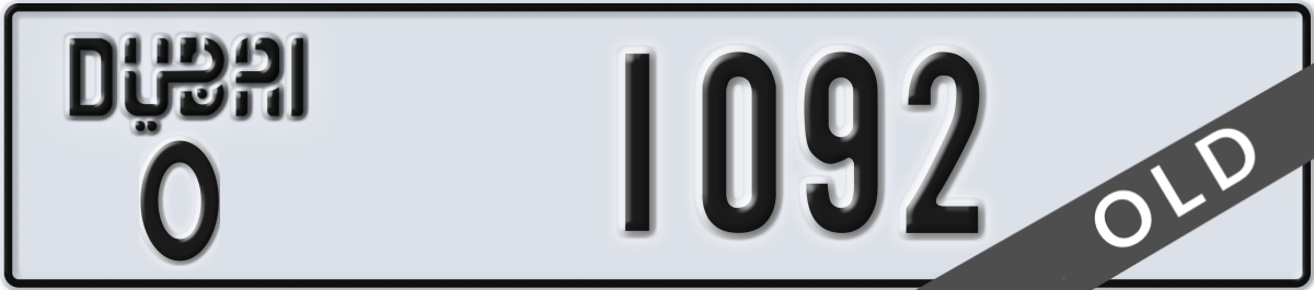 dubai License Plate Number 1092 Code O