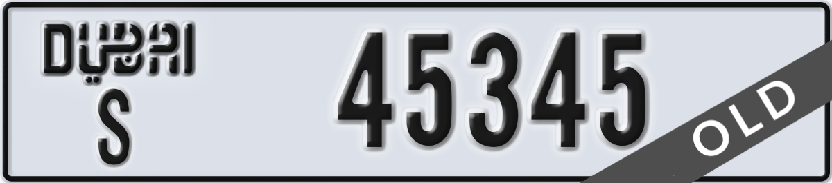 dubai License Plate Number 45345 Code S