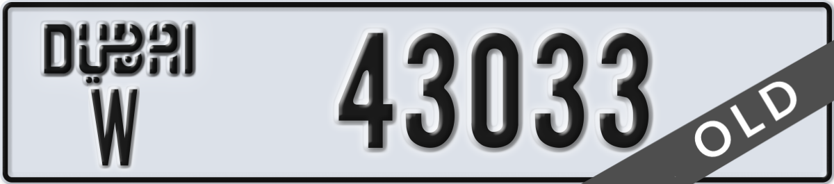 dubai License Plate Number 43033 Code W