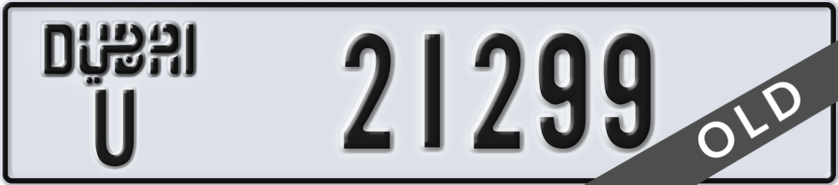 dubai License Plate Number 21299 Code U