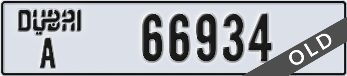 dubai License Plate Number 66934 Code A