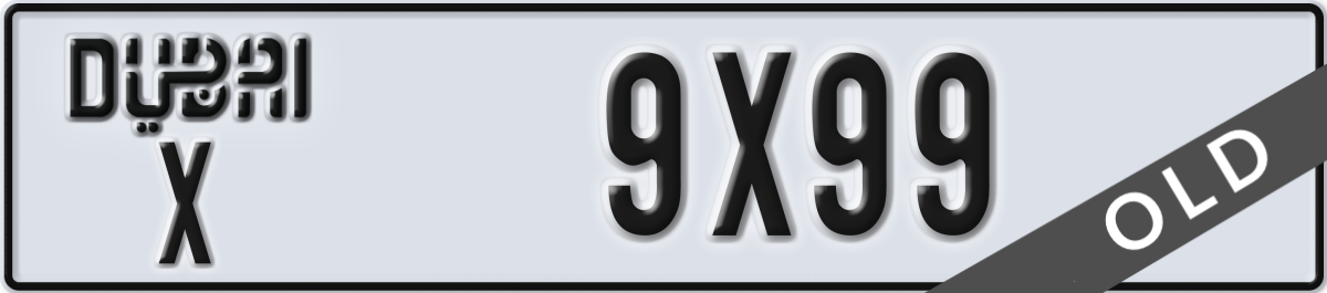dubai License Plate Number 9X99 Code X