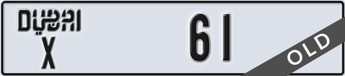 dubai License Plate Number 61 Code X