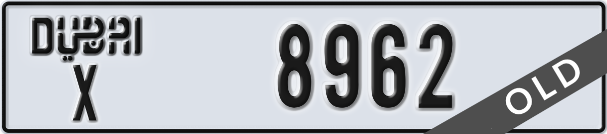 dubai License Plate Number 8962 Code X
