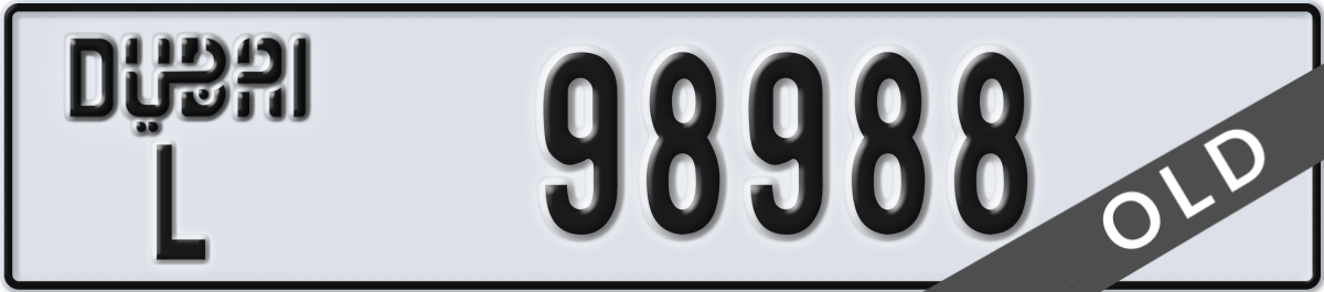 dubai License Plate Number 98988 Code L
