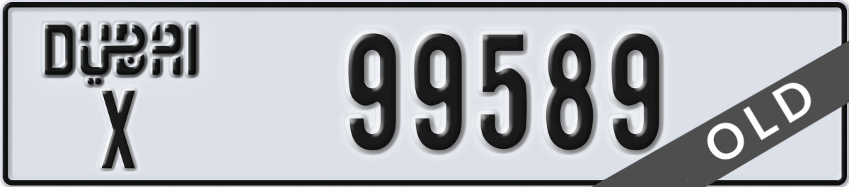dubai License Plate Number 99589 Code X