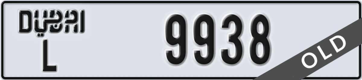 dubai License Plate Number 9938 Code L