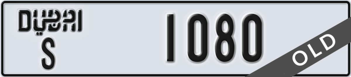 dubai License Plate Number 1080 Code S