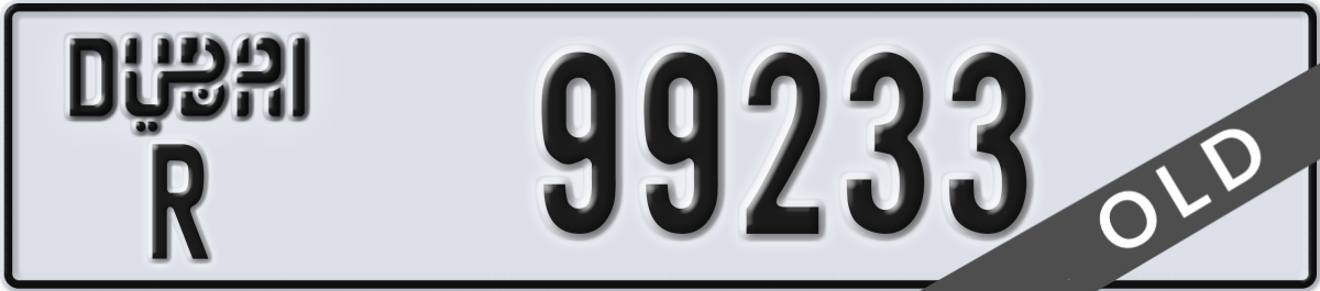 dubai License Plate Number 99233 Code R