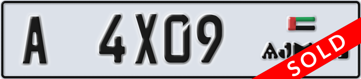 ajman License Plate Number 4X09 Code A