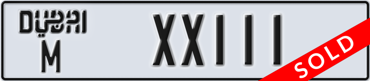 dubai License Plate Number XX111 Code M