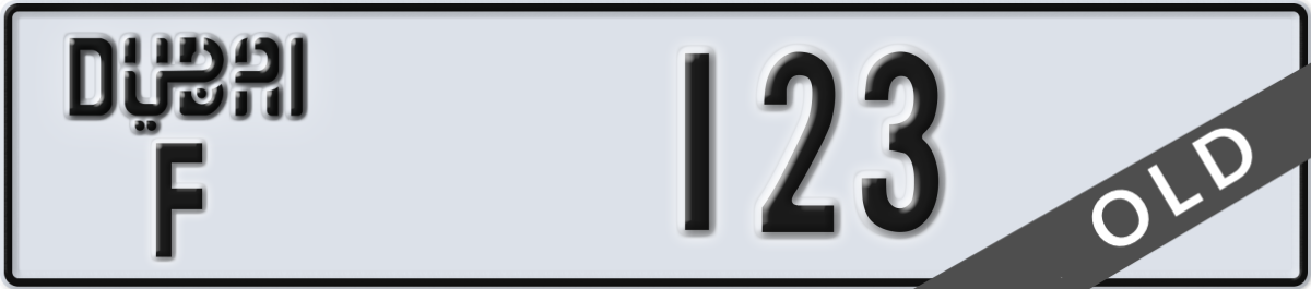 dubai License Plate Number 123 Code F