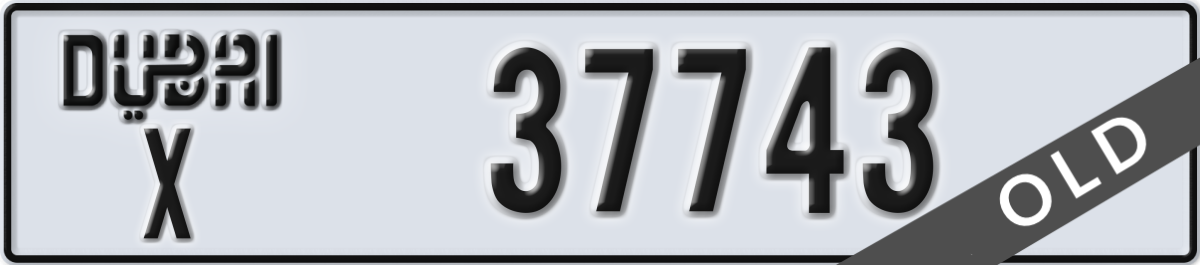 dubai License Plate Number 37743 Code X