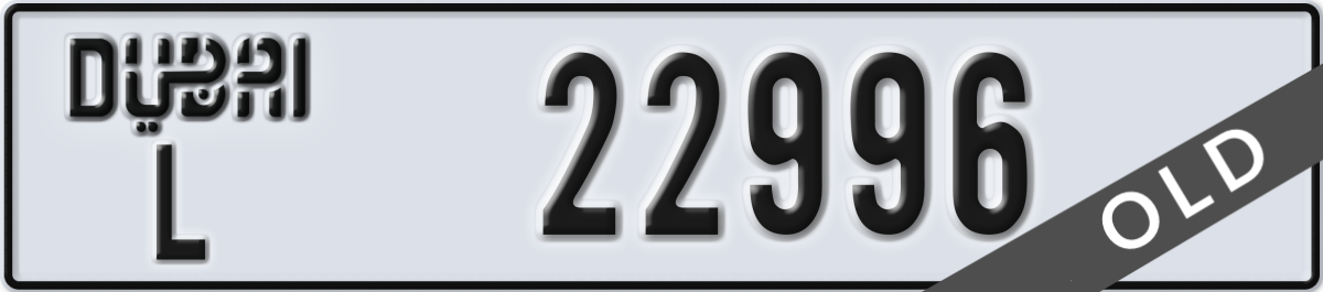 dubai License Plate Number 22996 Code L