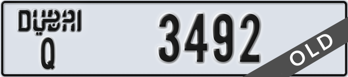 dubai License Plate Number 3492 Code Q