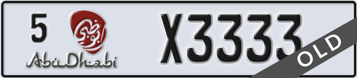abu dhabi License Plate Number X3333 Code 5