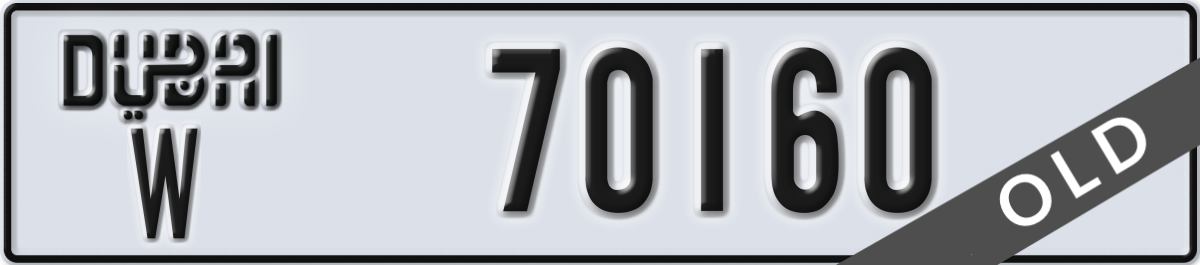 dubai License Plate Number 70160 Code W