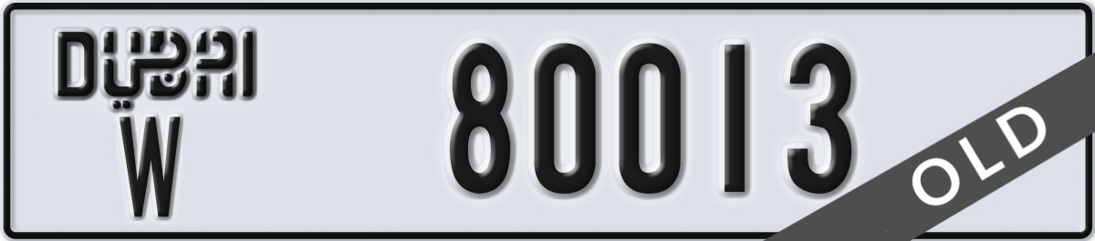 dubai License Plate Number 80013 Code W