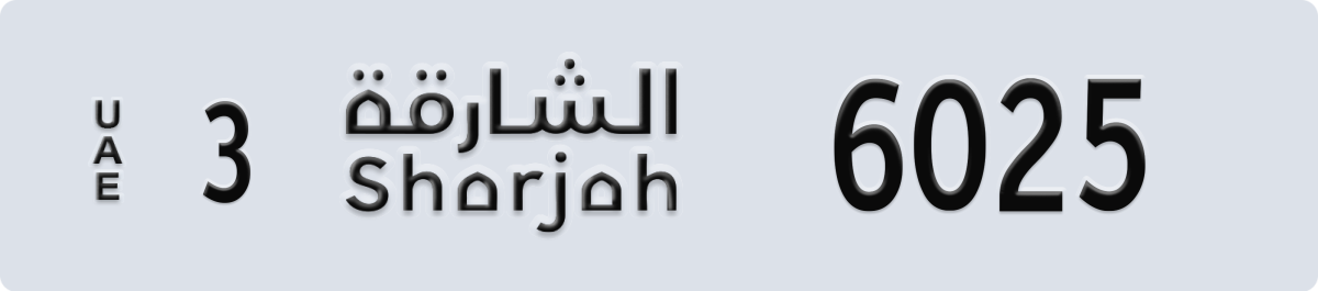 sharjah License Plate Number 6025 Code 3