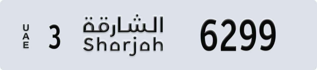 sharjah License Plate Number 6299 Code 3