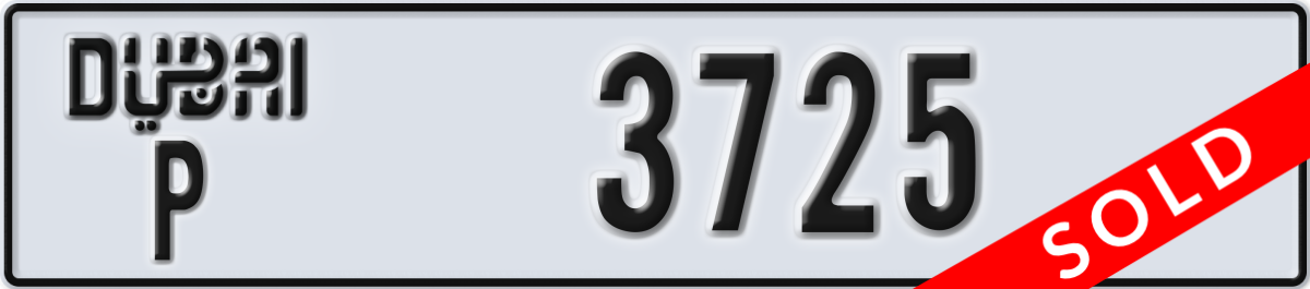 dubai License Plate Number 3725 Code P
