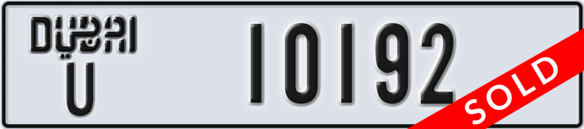 dubai License Plate Number 10192 Code U