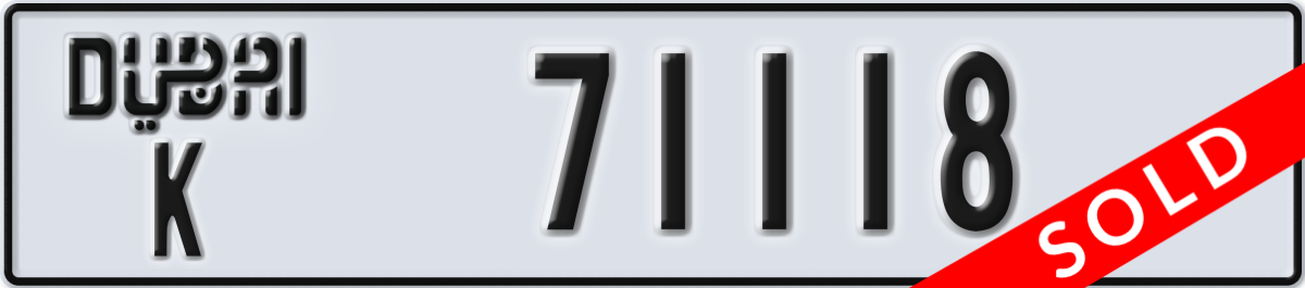 dubai License Plate Number 71118 Code K