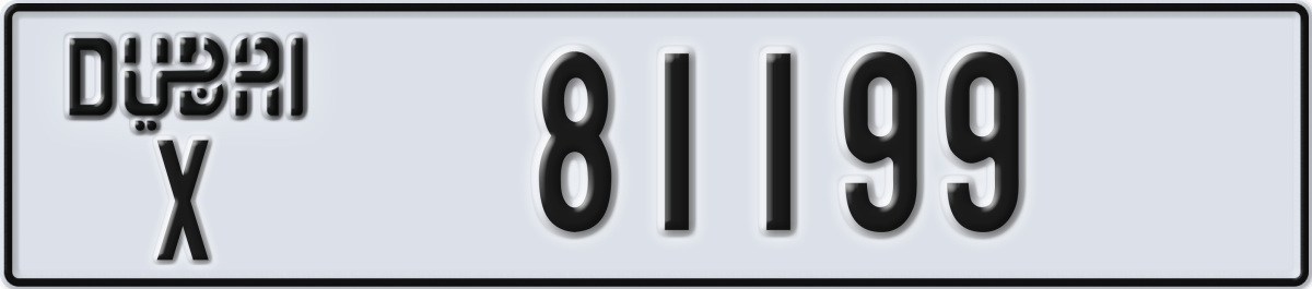 dubai License Plate Number 81199 Code X