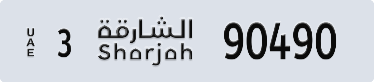 sharjah License Plate Number 90490 Code 3