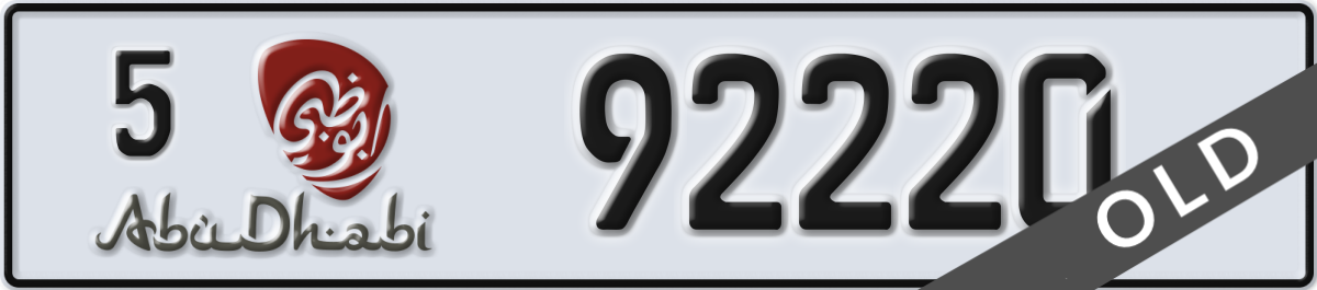 abu dhabi License Plate Number 92220 Code 5