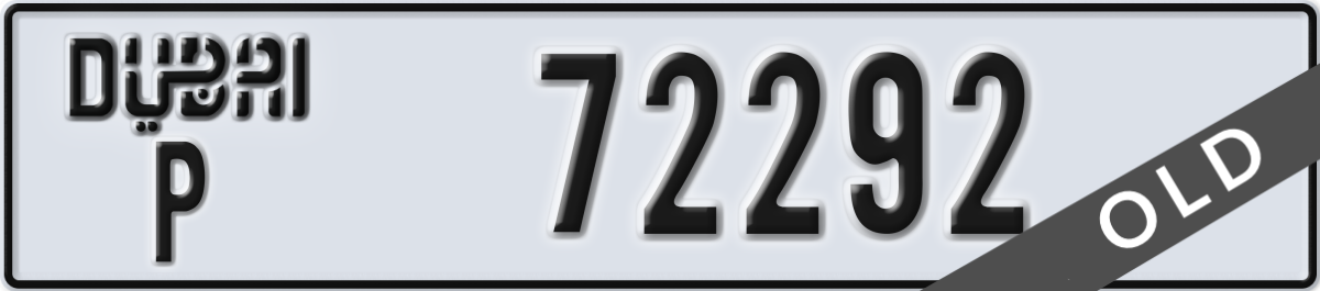 dubai License Plate Number 72292 Code P