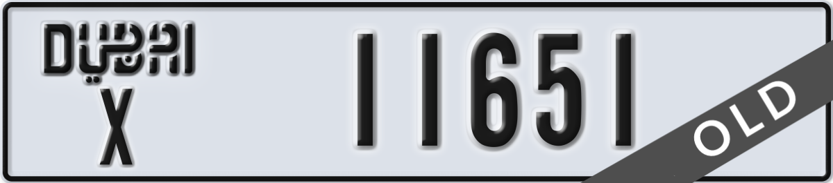 dubai License Plate Number 11651 Code X